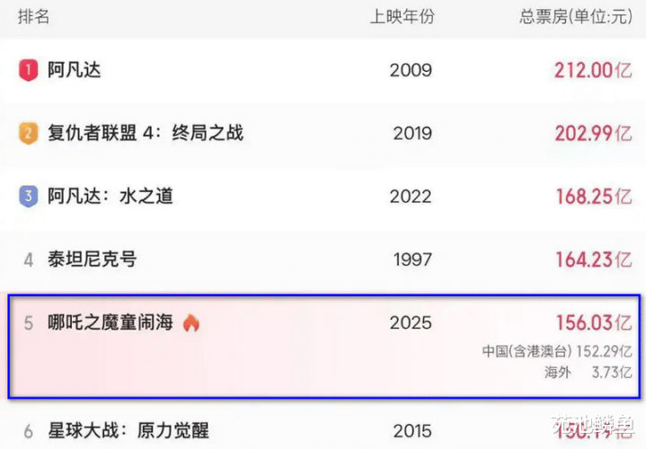 最新的消息,《哪吒2》的票房,已然冲破156亿大关,这便意味着,它终于可以跻身全球影史票房榜前五之列。